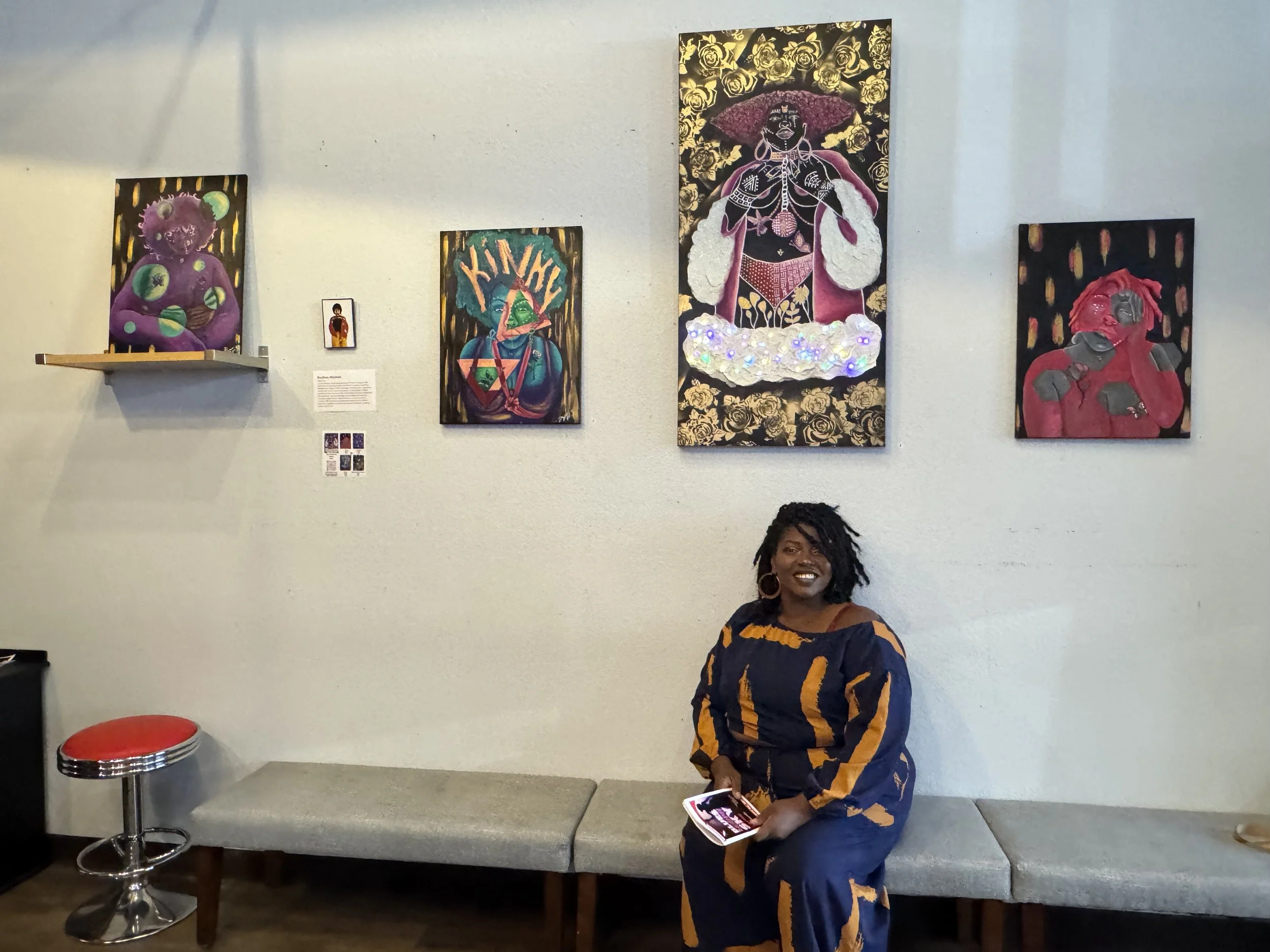 Since then, Bryttney-Mischele has curated and exhibited in multiple shows across San Diego County, including her 2025 solo exhibition Too Much Art for One’s Soul at the Bonita Art and Cultural Center, a retrospective highlighting five years of her artistry. The show blended painting, spoken word, and film, while inviting community participation through interactive installations. She is also the creator of the Alter Her Ego portrait series, a vibrant exploration of layered identities, and the Black All Year Month series, an annual celebration of Black culture and poetic expression.